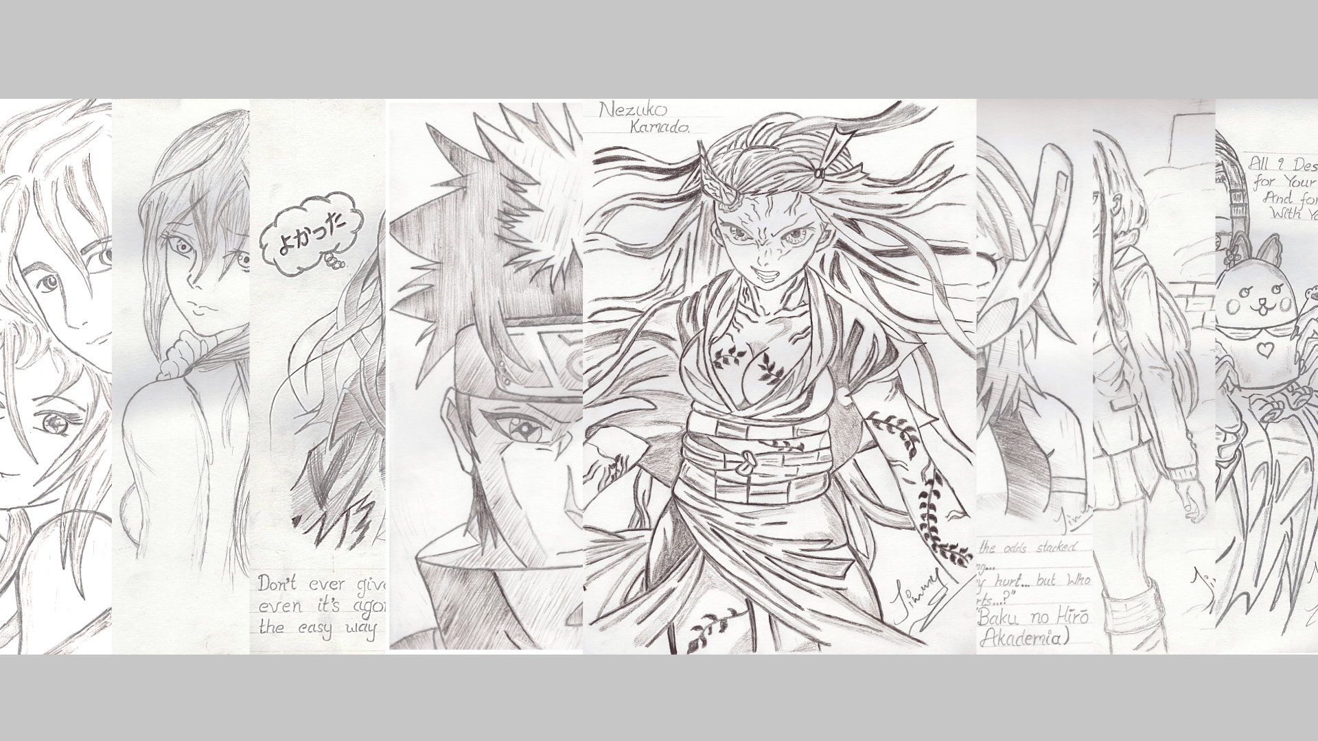 Detailed anime-inspired pencil sketch, printed and framed beautifully.