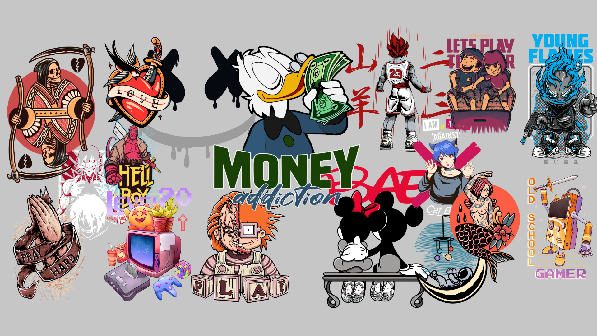 Bold graphic designs made for tees, mugs, stickers, caps, and more.